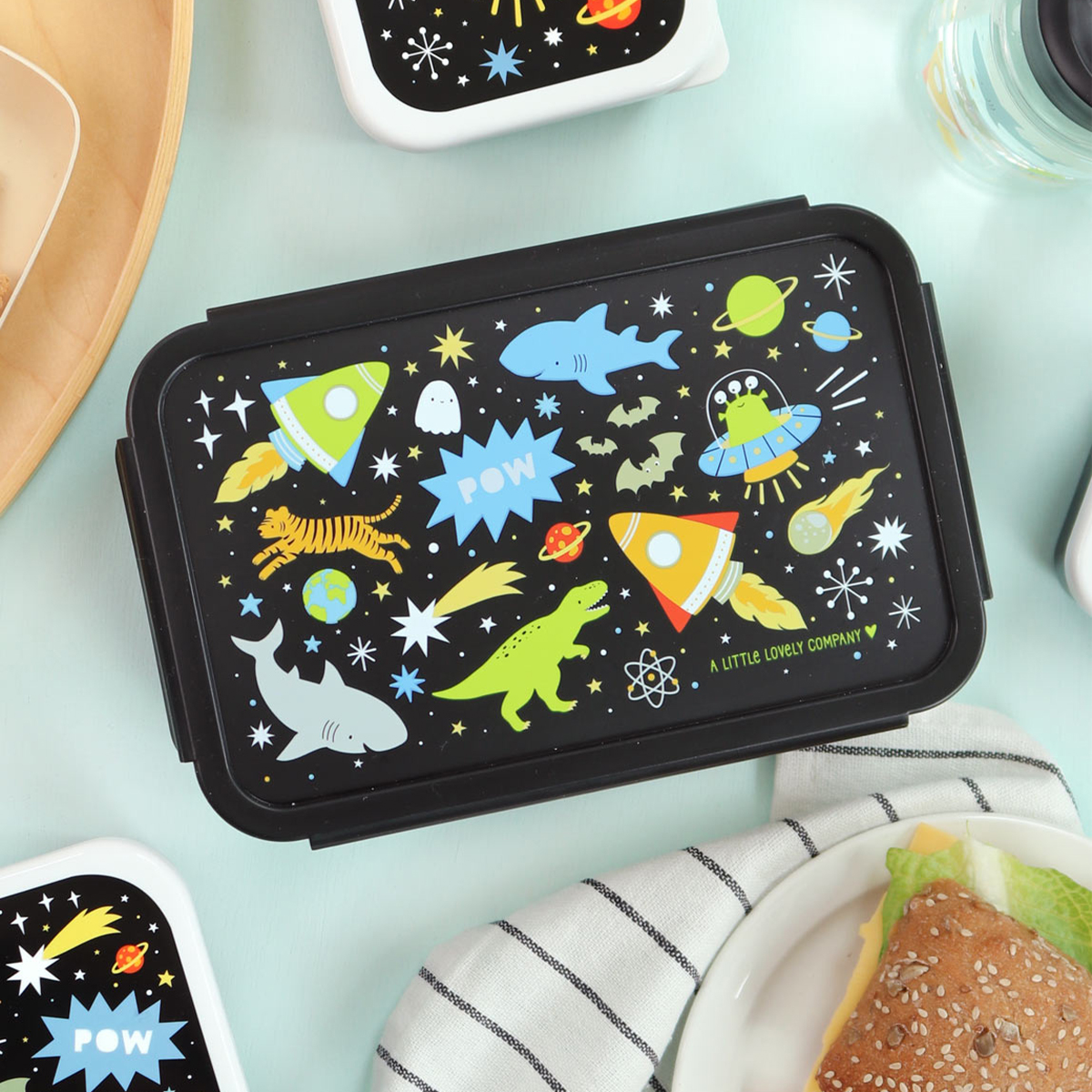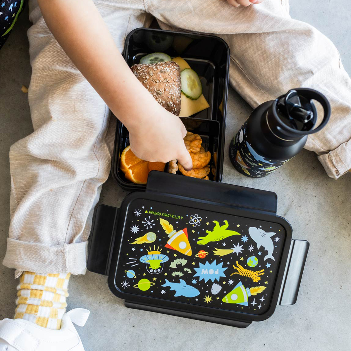 Lunchbox Bento dla najmłodszych w czarnym kolorze z kolorowymi grafikami dziecięcymi