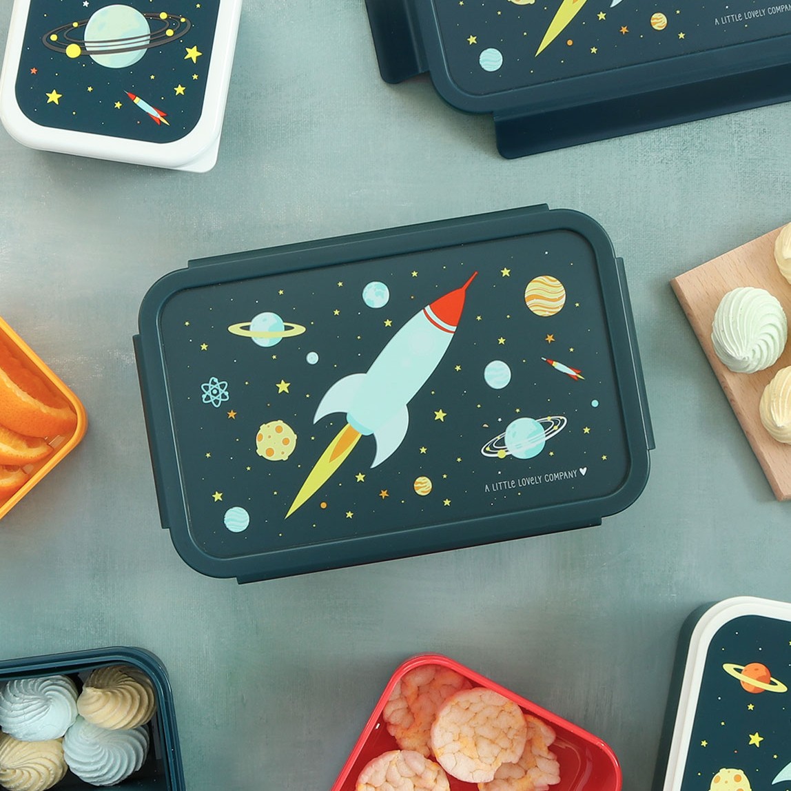 Lunchbox Bento dla najmłodszych z motywem kosmicznej rakiety na pokrywce