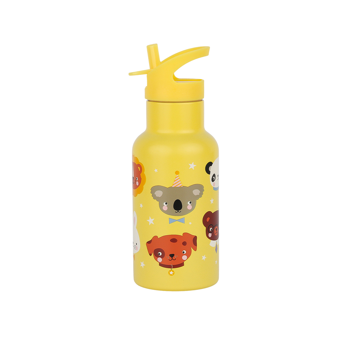Termiczna butelka dziecięca w kolorze żółtym z motywem zwierząt