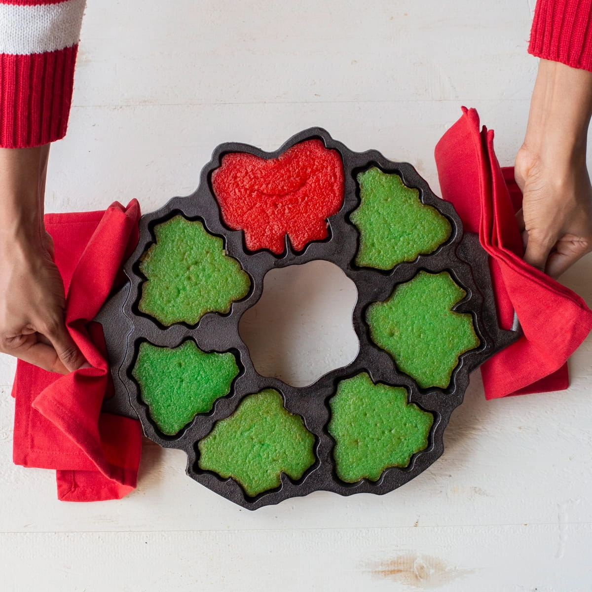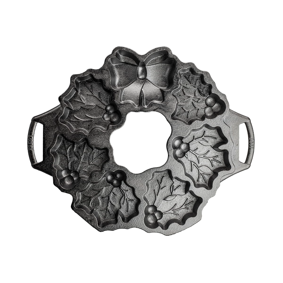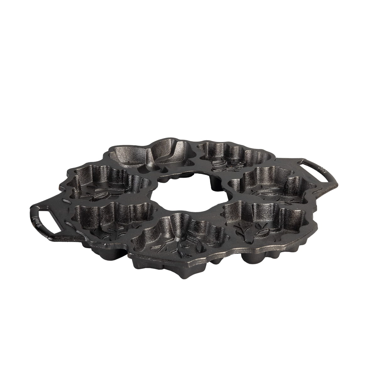 Dzięki żeliwnej formie Lodge upieczesz 7 ciastek w kształcie liści ostrokrzewu z jagodami oraz ozdobną kokardę. Możesz użyć ich do udekorowania stołu, układając w formie świątecznej girlandy.