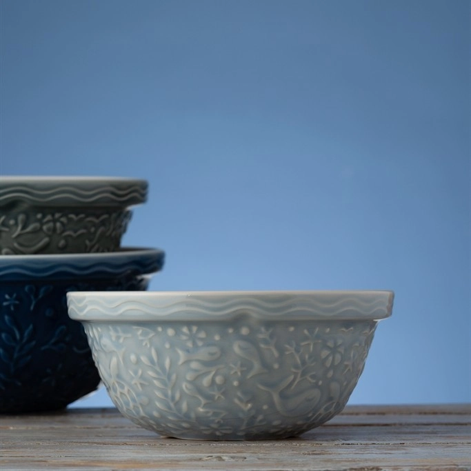 Ceramiczna miska kuchenna Mason Cash z kolekcji Nautical w rozmiarze S24 (24 cm) to klasyczna misa do wyrabiania ciasta i mieszania składników, opracowana z intencją wieloletniego, codziennego użytkowania. Seria Nautical wyróżnia się tłoczeniami o tematyce morskiej, a struktura na zewnętrznych ściankach ułatwia stabilne trzymanie misy podczas pracy.