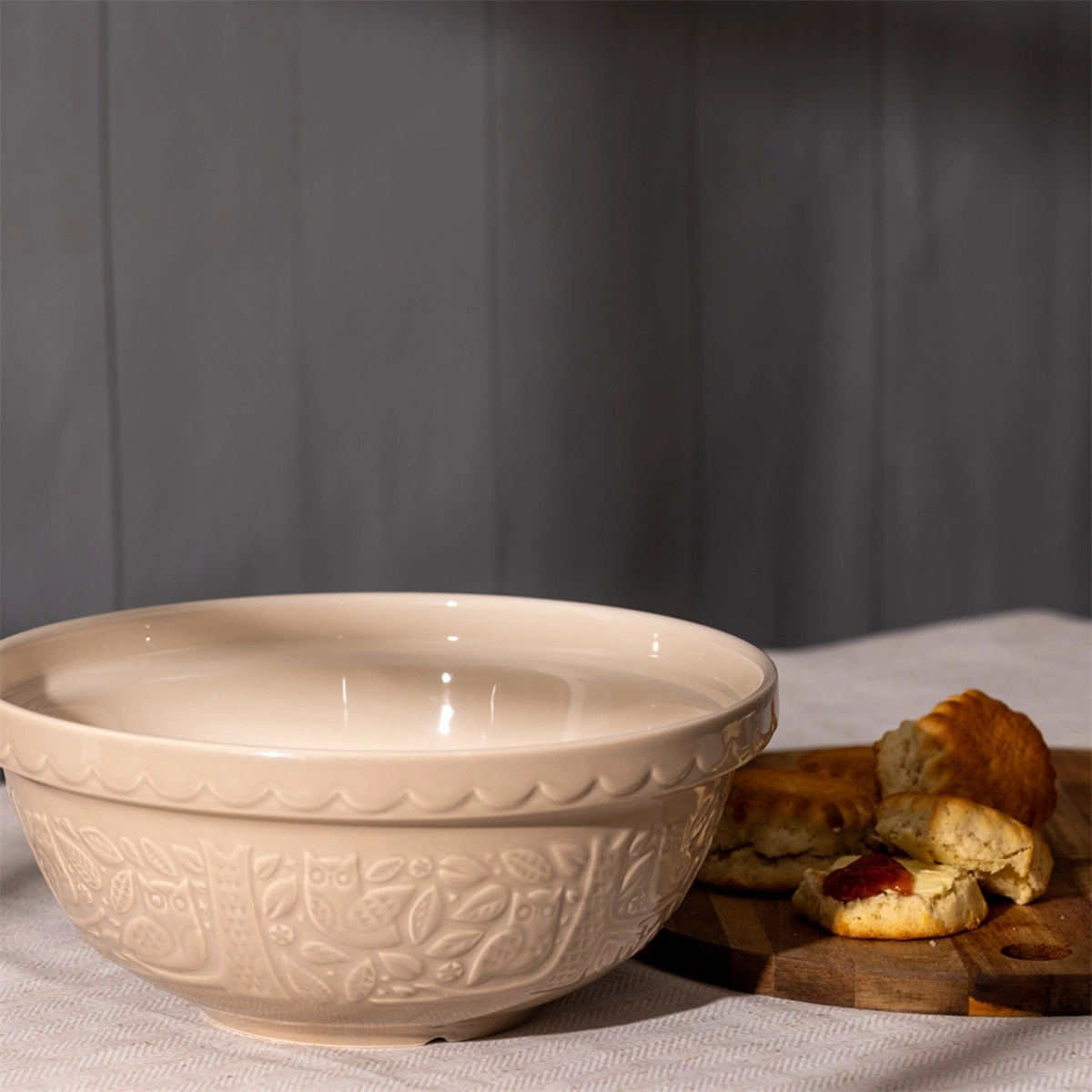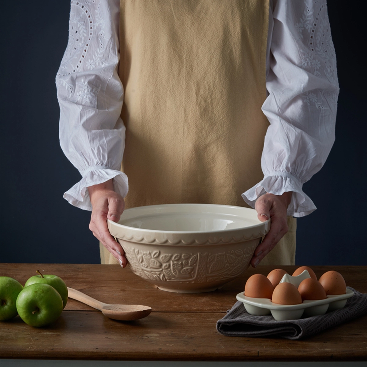 Ceramiczna miska kuchenna Mason Cash z kolekcji In the Forest w rozmiarze S18 (średnica 26 cm) została stworzona jako wszechstronne naczynie do przygotowywania wypieków. Tłoczony dekor w sceny leśne inspirowane tradycyjnymi opowieściami z połowy XIX wieku podkreśla kolekcję, zachowując jednocześnie w pełni użytkowy charakter produktu.