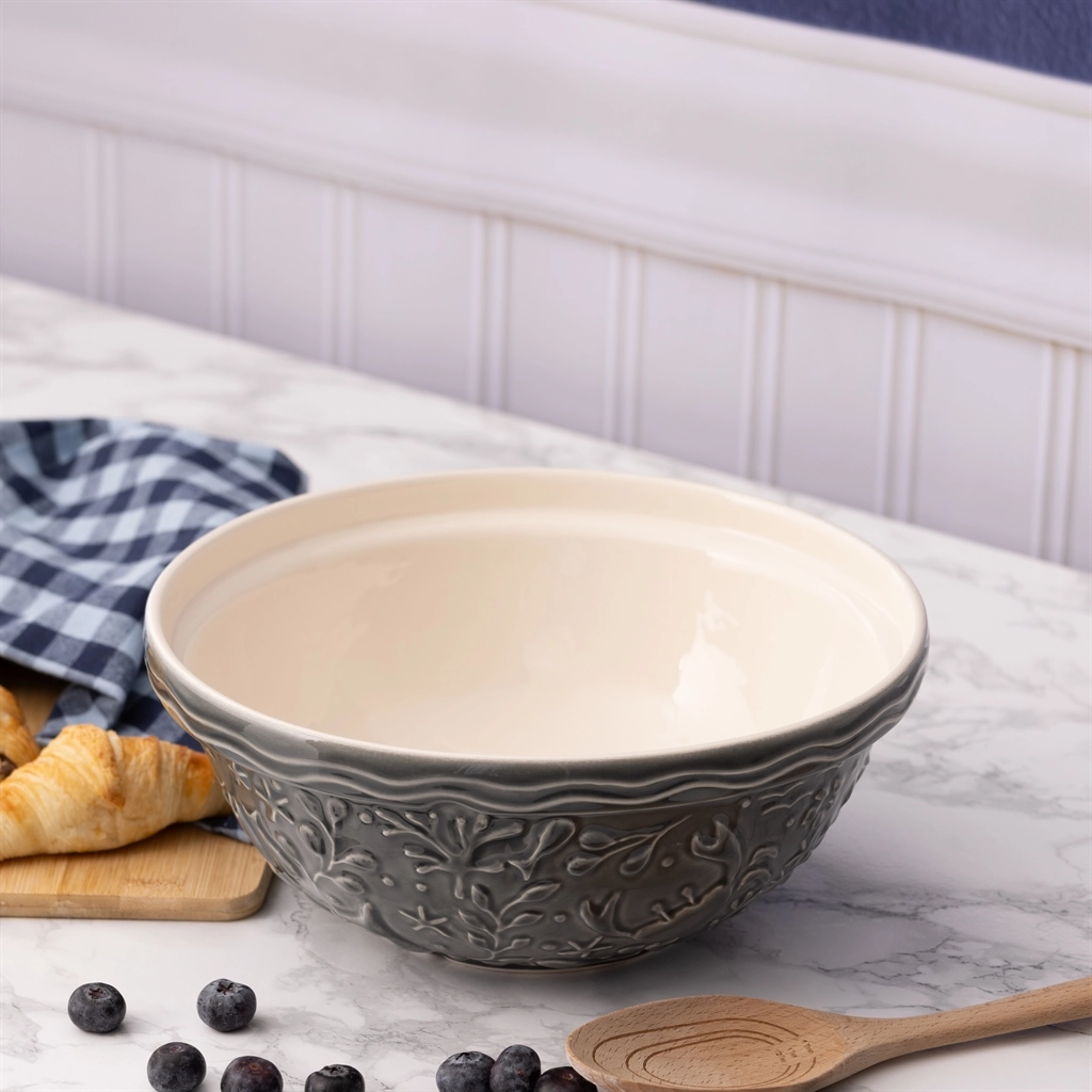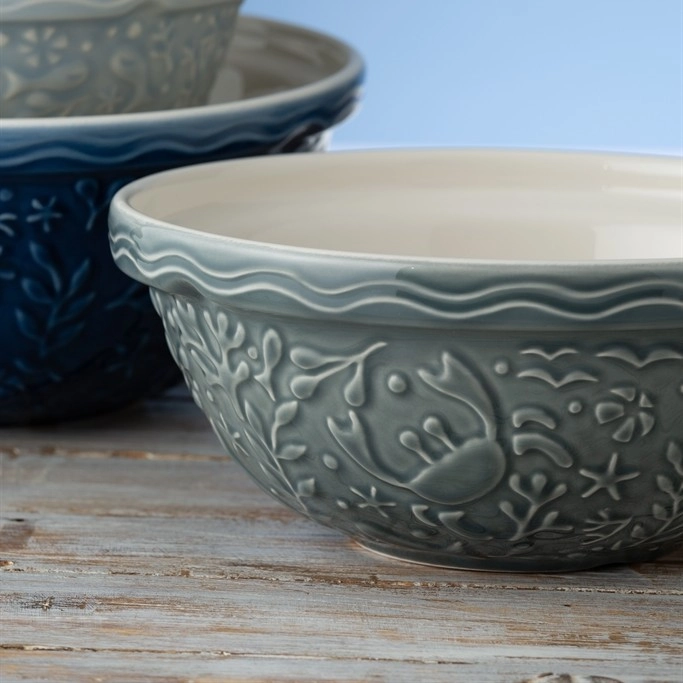 Ceramiczna miska kuchenna Mason Cash z kolekcji Nautical w rozmiarze S18 (26 cm) to klasyczna misa do wyrabiania ciasta i mieszania składników, opracowana z intencją wieloletniego, codziennego użytkowania. Zewnętrzne ścianki zdobione są tłoczeniami inspirowanymi motywami morskimi, które jednocześnie pełnią funkcję praktyczną – poprawiają chwyt podczas pracy.
