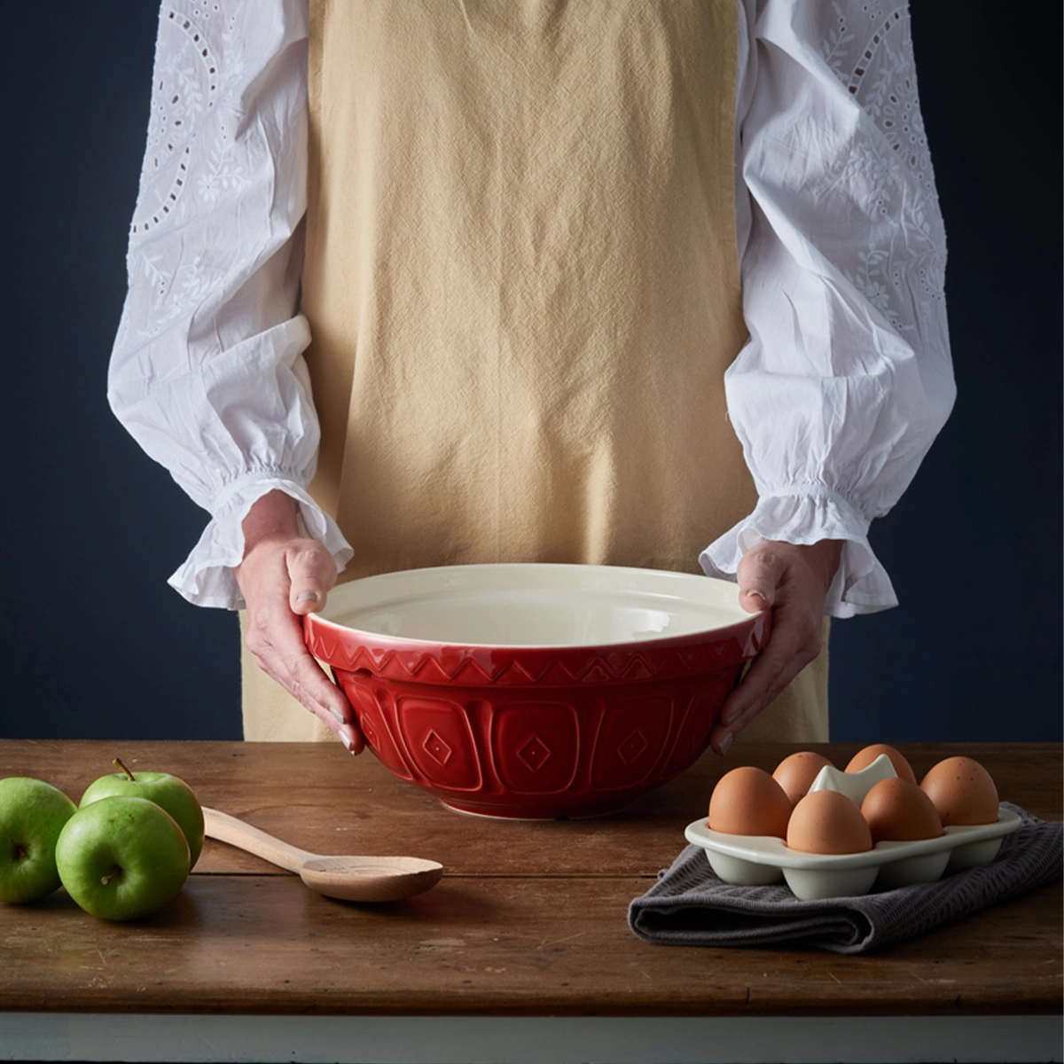 Ceramiczna miska kuchenna Mason Cash z kolekcji Colour Mix o średnicy 26 cm, to klasyczna misa do wyrabiania ciasta i mieszania składników, opracowana z intencją wieloletniego, codziennego użytkowania. Producent podkreśla, że forma została zaprojektowana tak, aby była na tyle lekka, by dało się ją wygodnie trzymać w jednej ręce podczas mieszania, a jednocześnie stabilna na blacie. Wariant kolorystyczny określany jest jako „red” czyli klasyczny czerwony.
