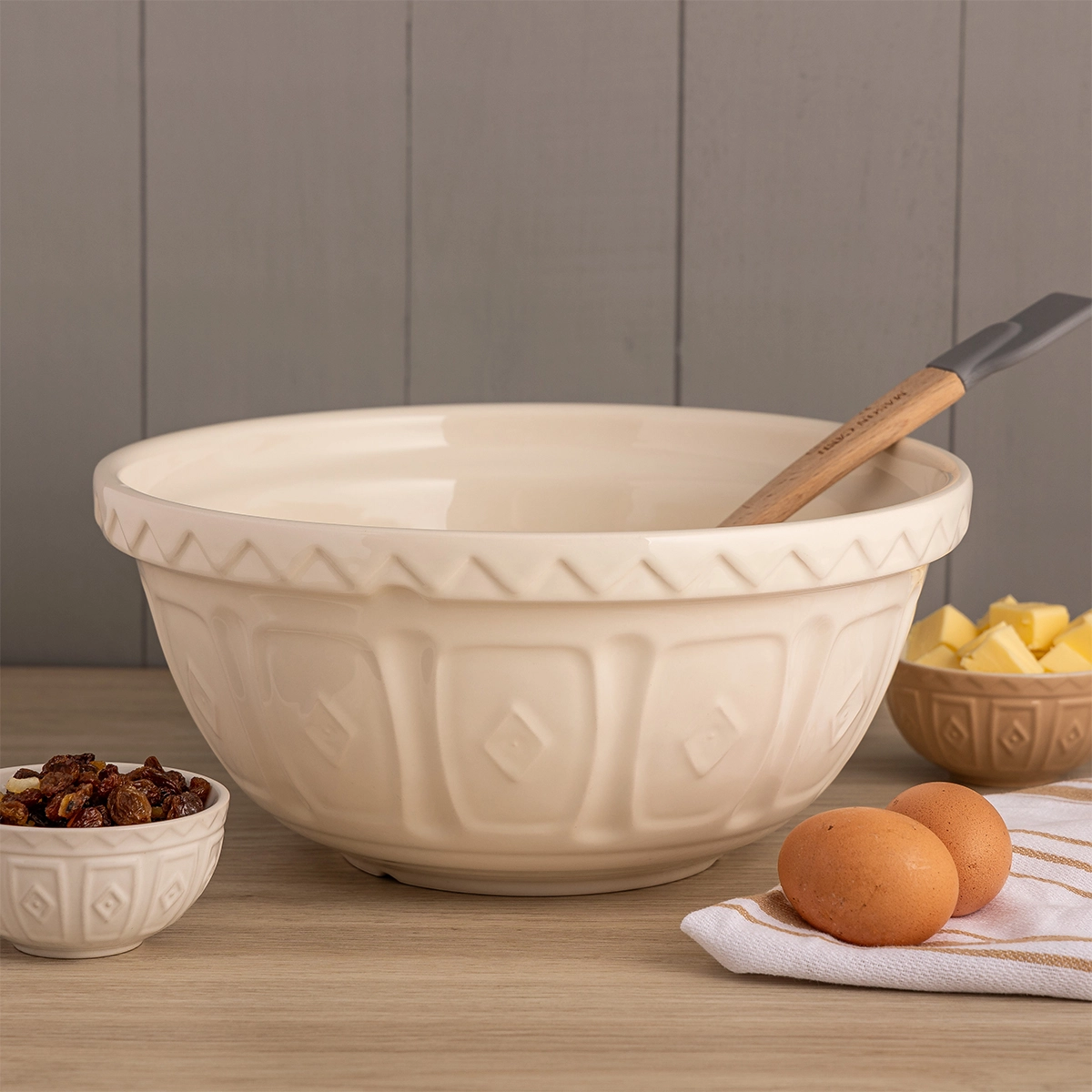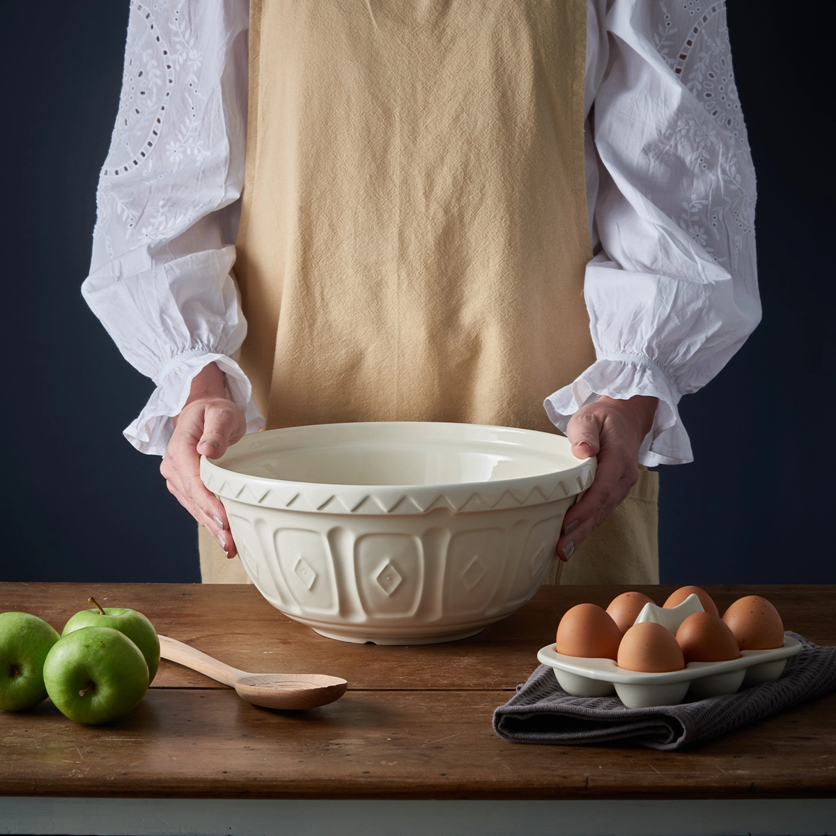 Duża ceramiczna misa Mason Cash to kultowy element wyposażenia kuchni, który od ponad wieku cieszy się zaufaniem domowych i profesjonalnych piekarzy. Projekt opracowany po raz pierwszy w 1901 roku stał się symbolem brytyjskiego wzornictwa i do dziś pozostaje flagowym produktem marki Mason Cash.