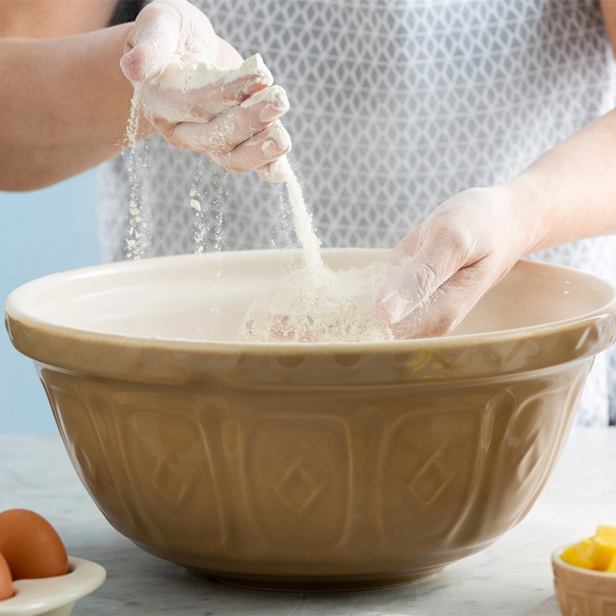 Charakterystyczna, tłoczona powierzchnia zewnętrzna nie tylko nawiązuje do tradycji marki Mason Cash, ale także poprawia komfort użytkowania. Misa wykonana jest z trwałej ceramiki, odpornej na codzienne użytkowanie.