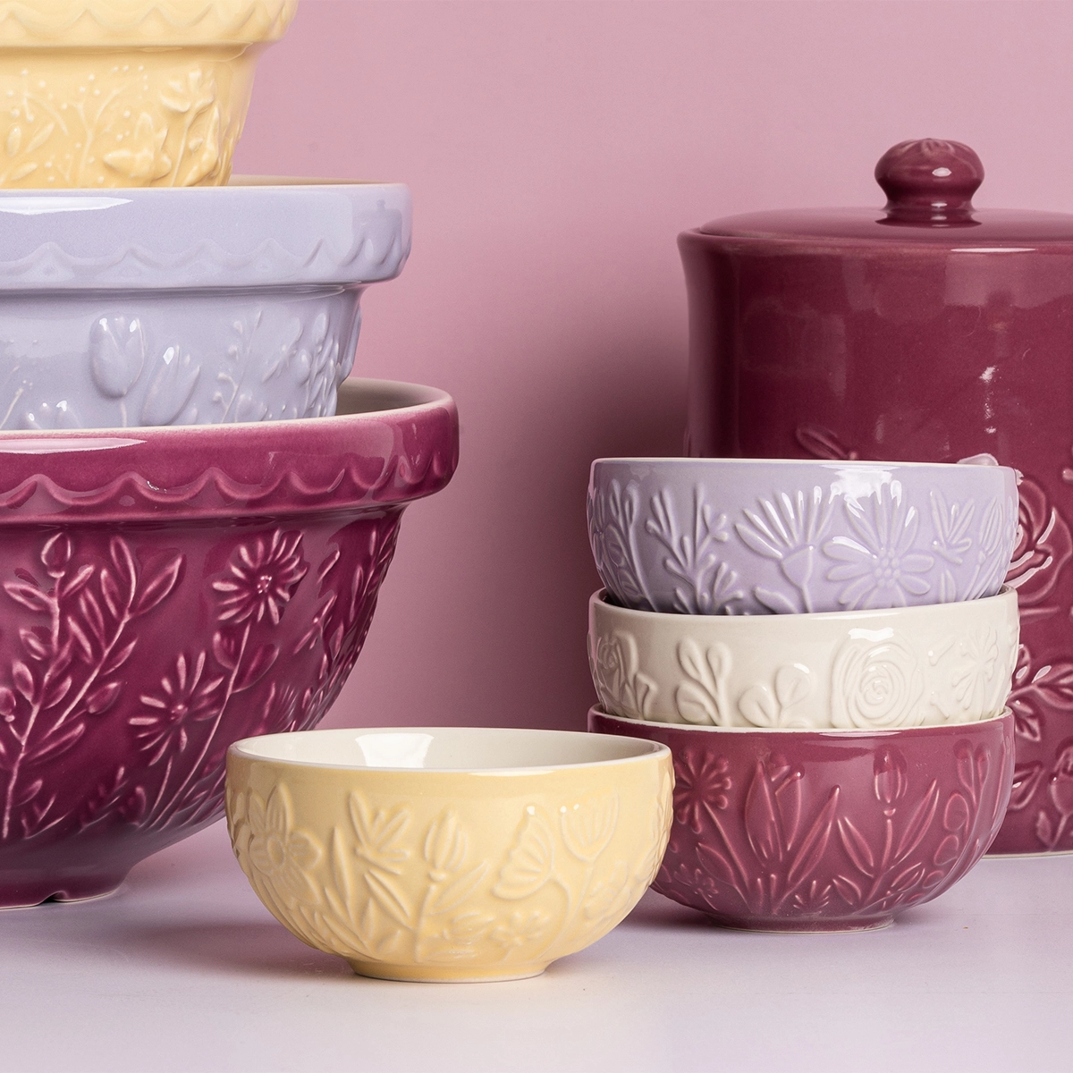 Zestaw Mason Cash In the Meadow to komplet 4 ceramicznych misek kuchennych do przygotowywania składników i serwowania drobnych porcji. Miski należą do kolekcji zdobionej delikatnymi, tłoczonymi motywami florystycznymi i roślinnymi, które nadają naczyniom rozpoznawalny charakter, a jednocześnie pozostają w pełni użytkowe w codziennej pracy w kuchni.