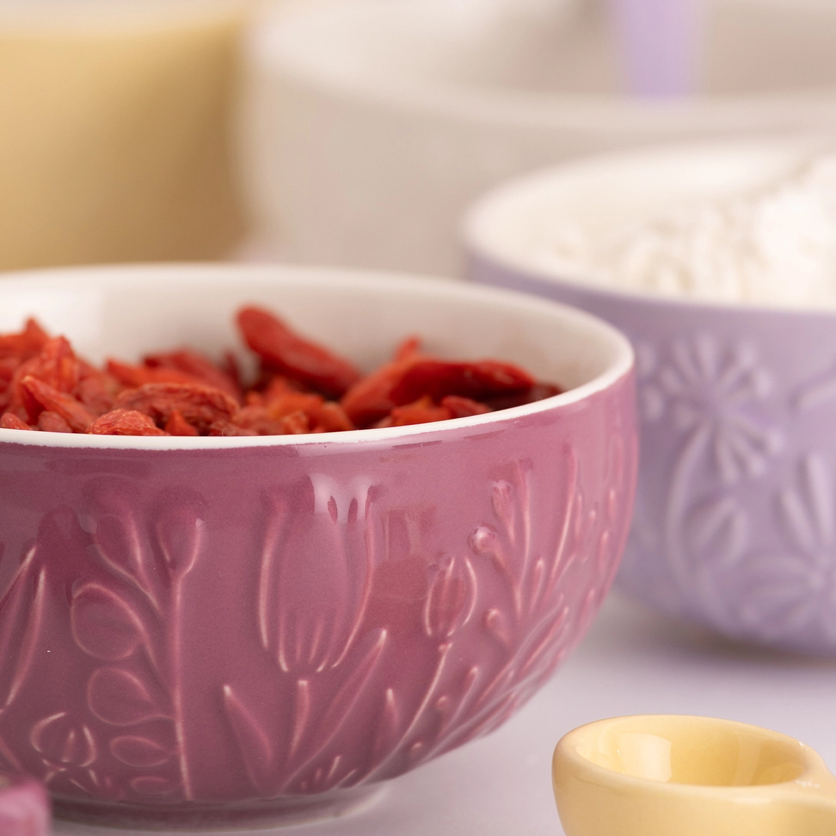 - Wymiary jednej miski: 10 cm śr x 5 cm wys.