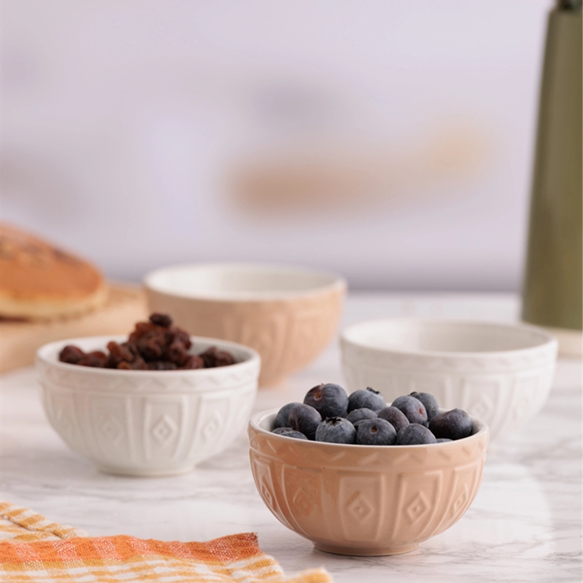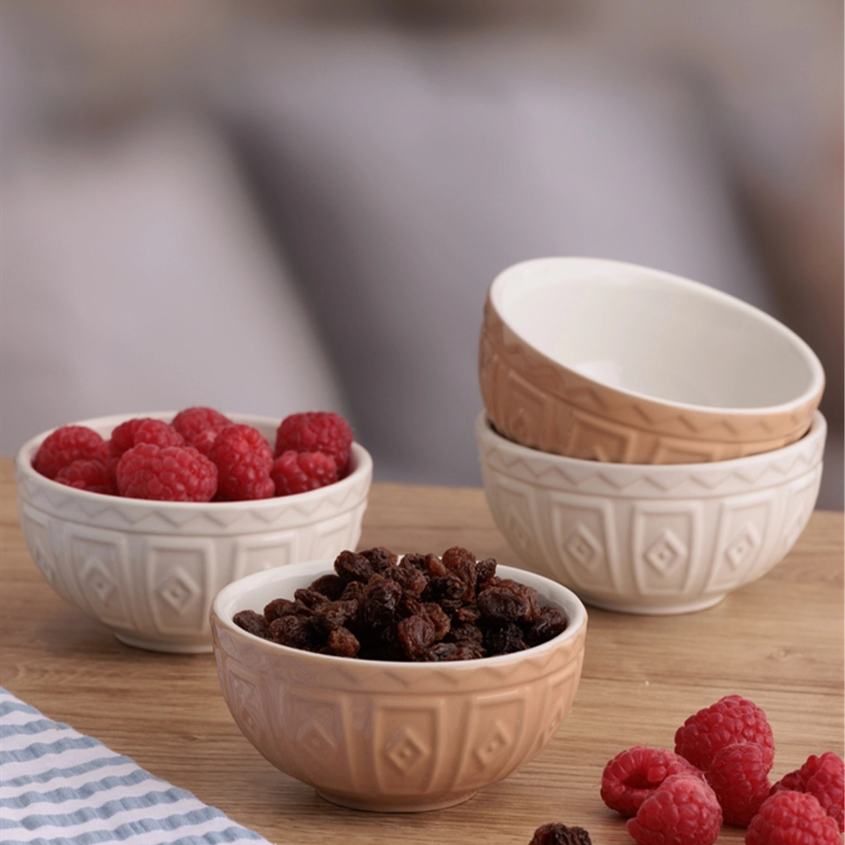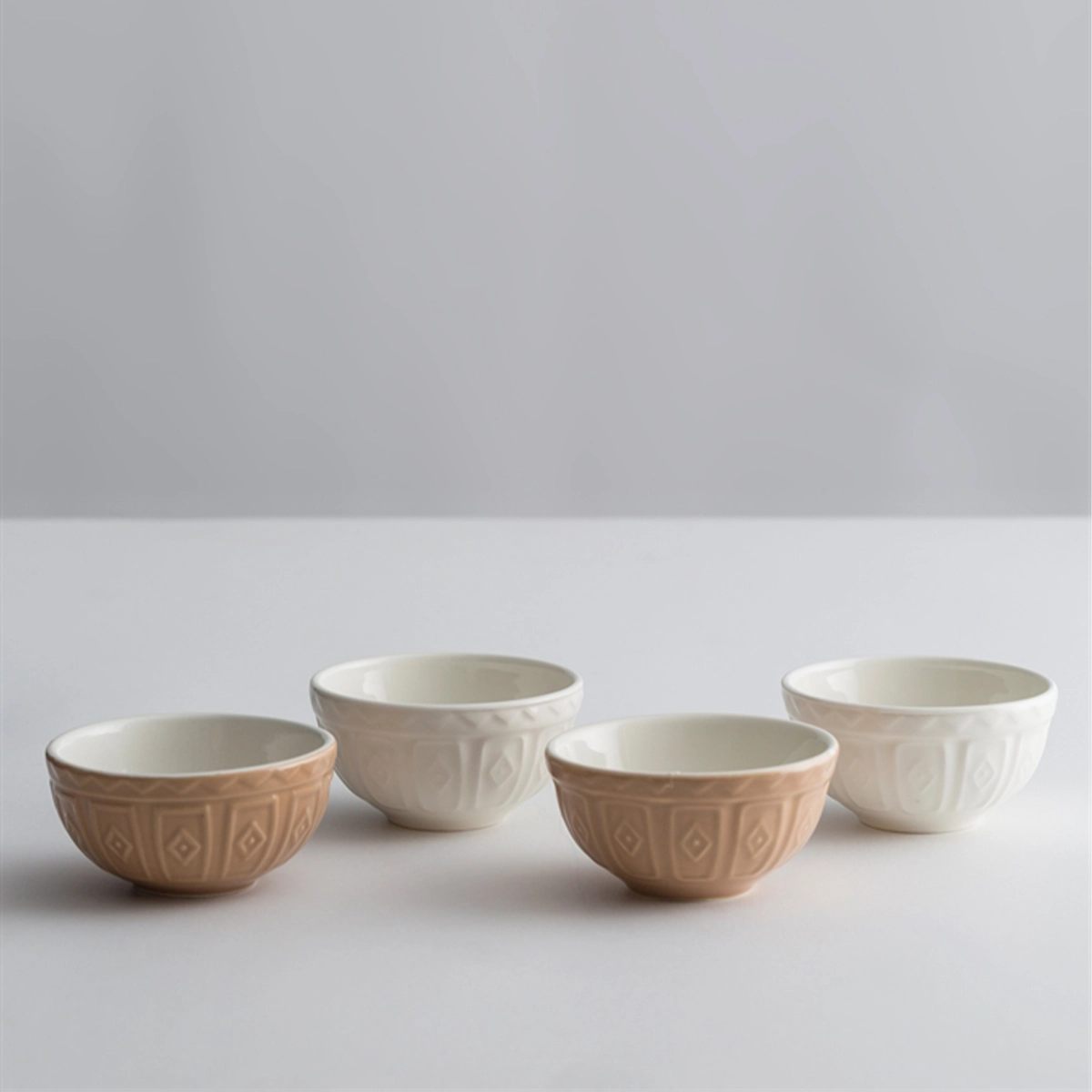 - Zestaw: 4 miseczki (2 w kolorze kremowym, 2 w kolorze beżowym)