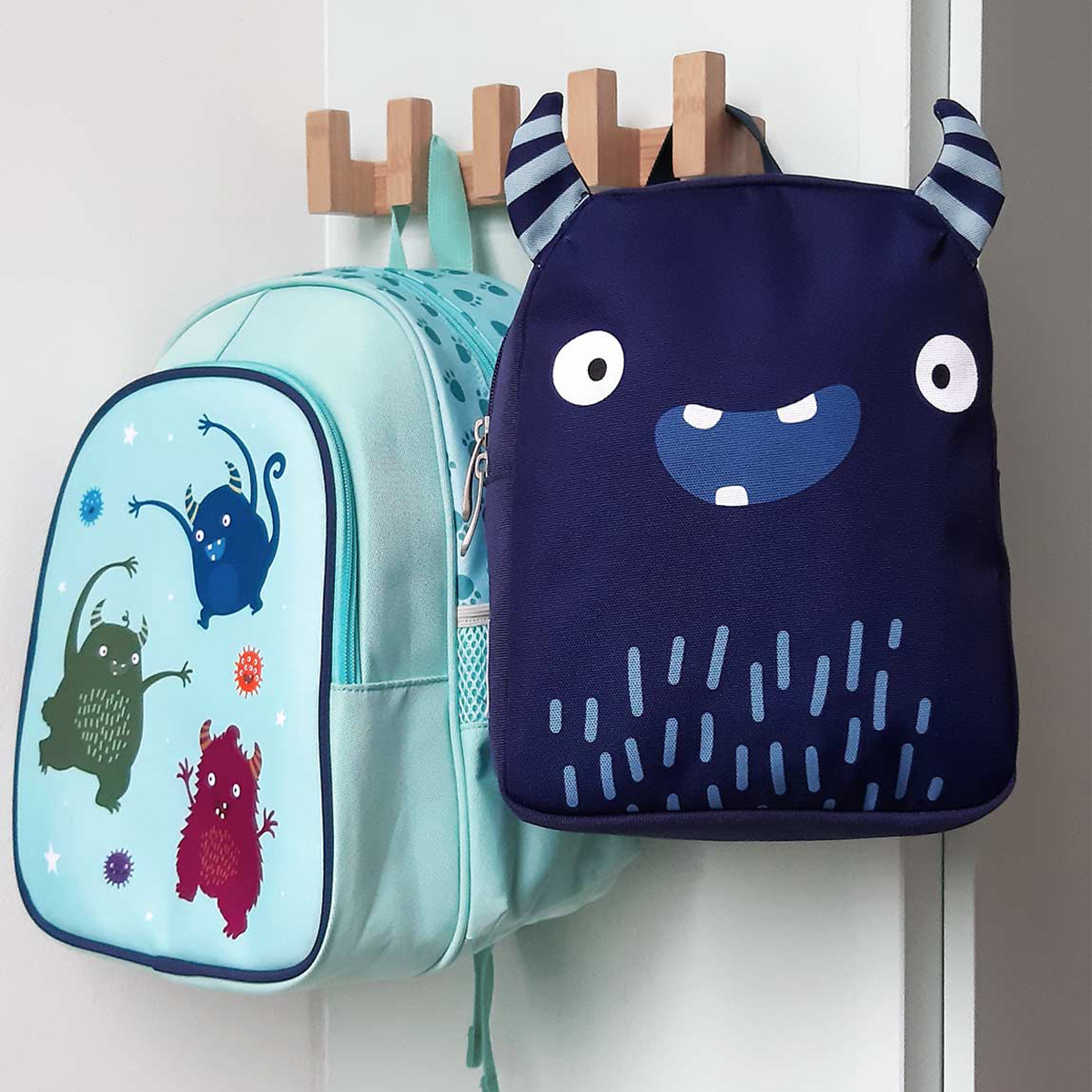 Granatowy plecak z zabawnym nadrukiem potworka to idealny wybór dla maluchów do przedszkola, żłobka lub na krótką wycieczkę.