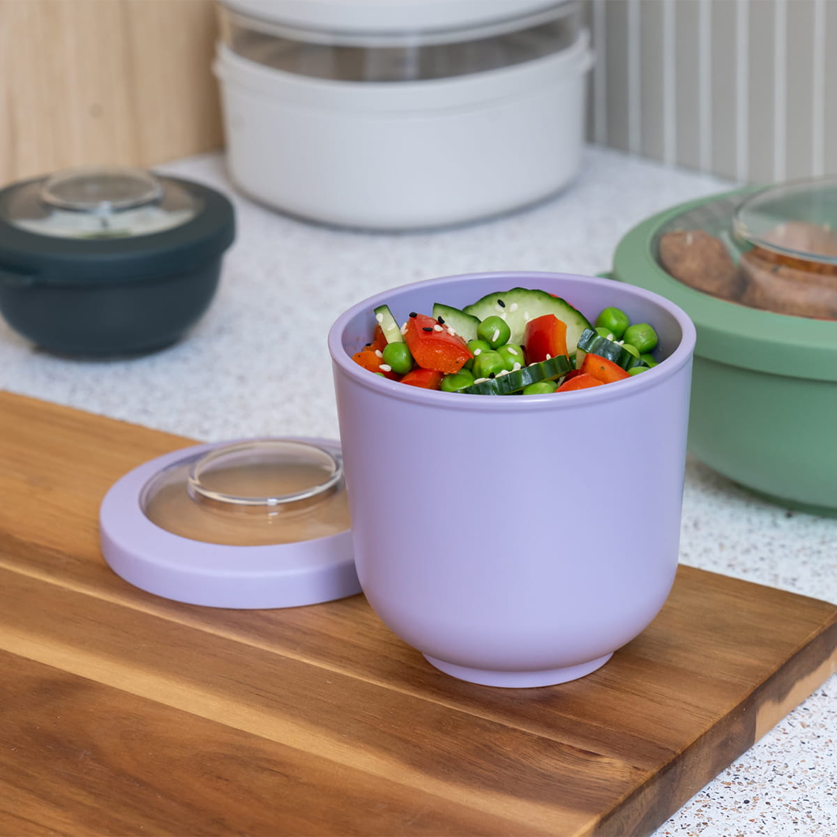 Miseczka dzięki szczelnej pokrywce sprawdzi się do wielu zadań kuchennych od przechowywania i przygotowywania aż po transportowanie i bezpośrednie spożywanie z niej żywności.