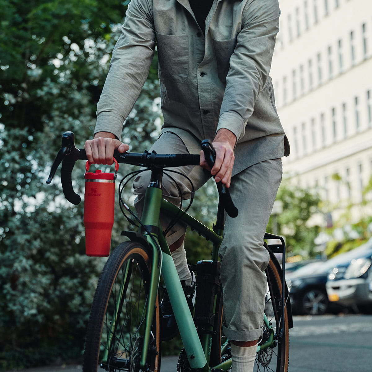 Wyprofilowany kształt pasuje do większości samochodowych uchwytów na kubki, kubek mieści się także w uchwytach na bieżniach i rowerkach stacjonarnych.